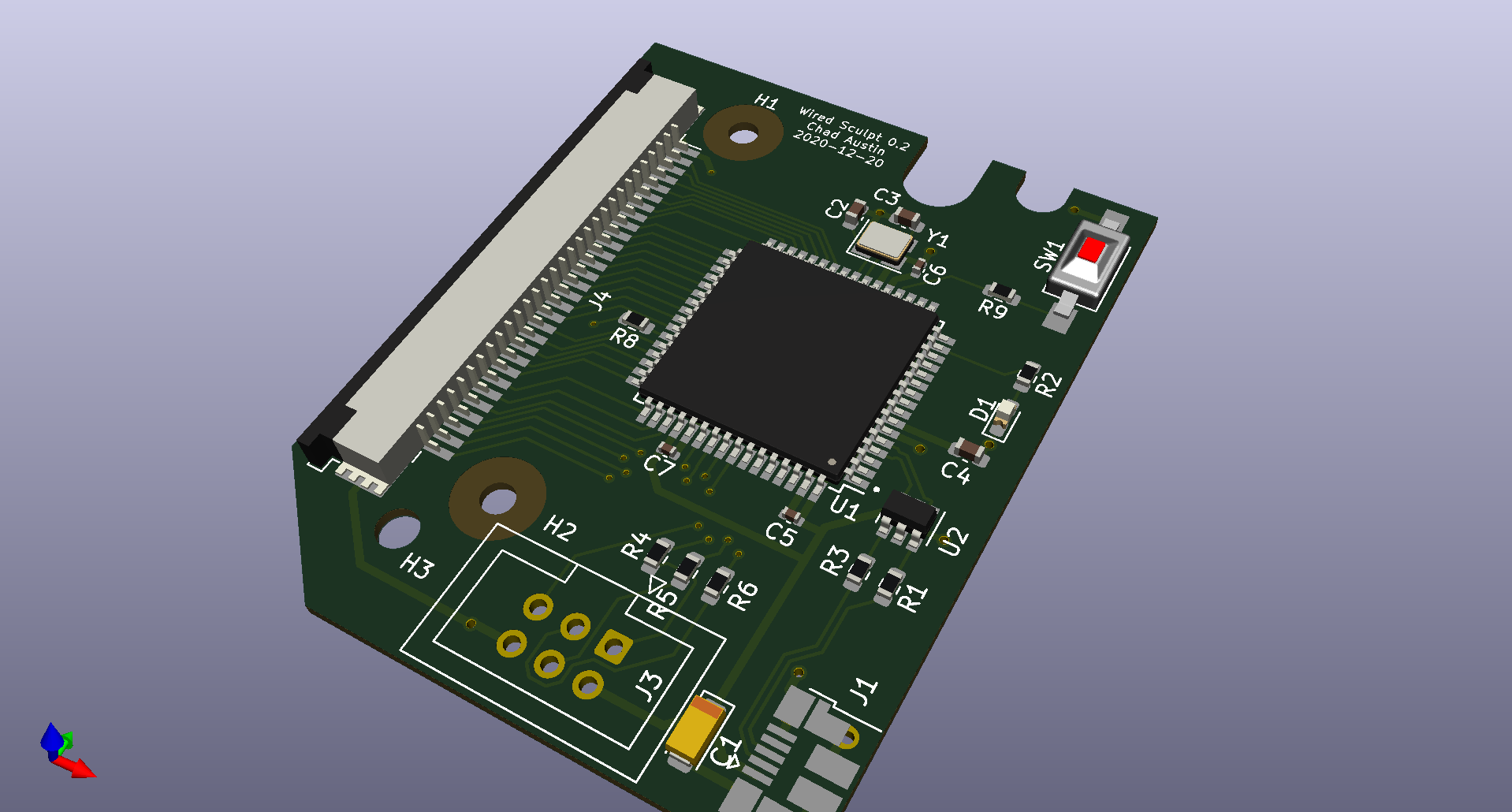 I found myself getting lost in the abstractness of holes and traces and footprints, so it was helpful to ground myself by occasionally loading the PCB in KiCad’s 3D viewer.