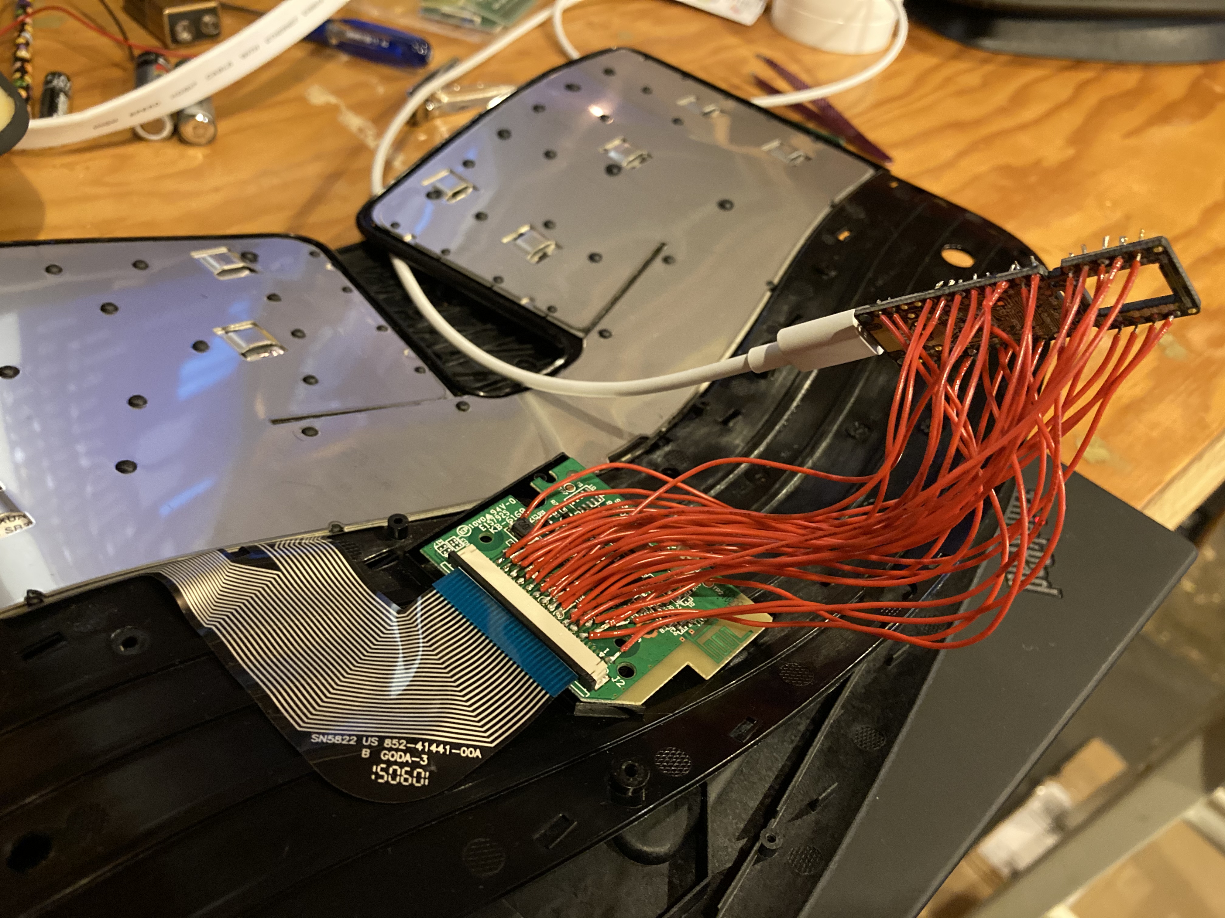 I almost gave up here, but Per Vognsen suggested I scan the matrix myself and it turns out Michael Fincham had already mapped out the matrix and soldered a Teensy 2.0++ board onto the Sculpt’s test pads, showing this was doable!