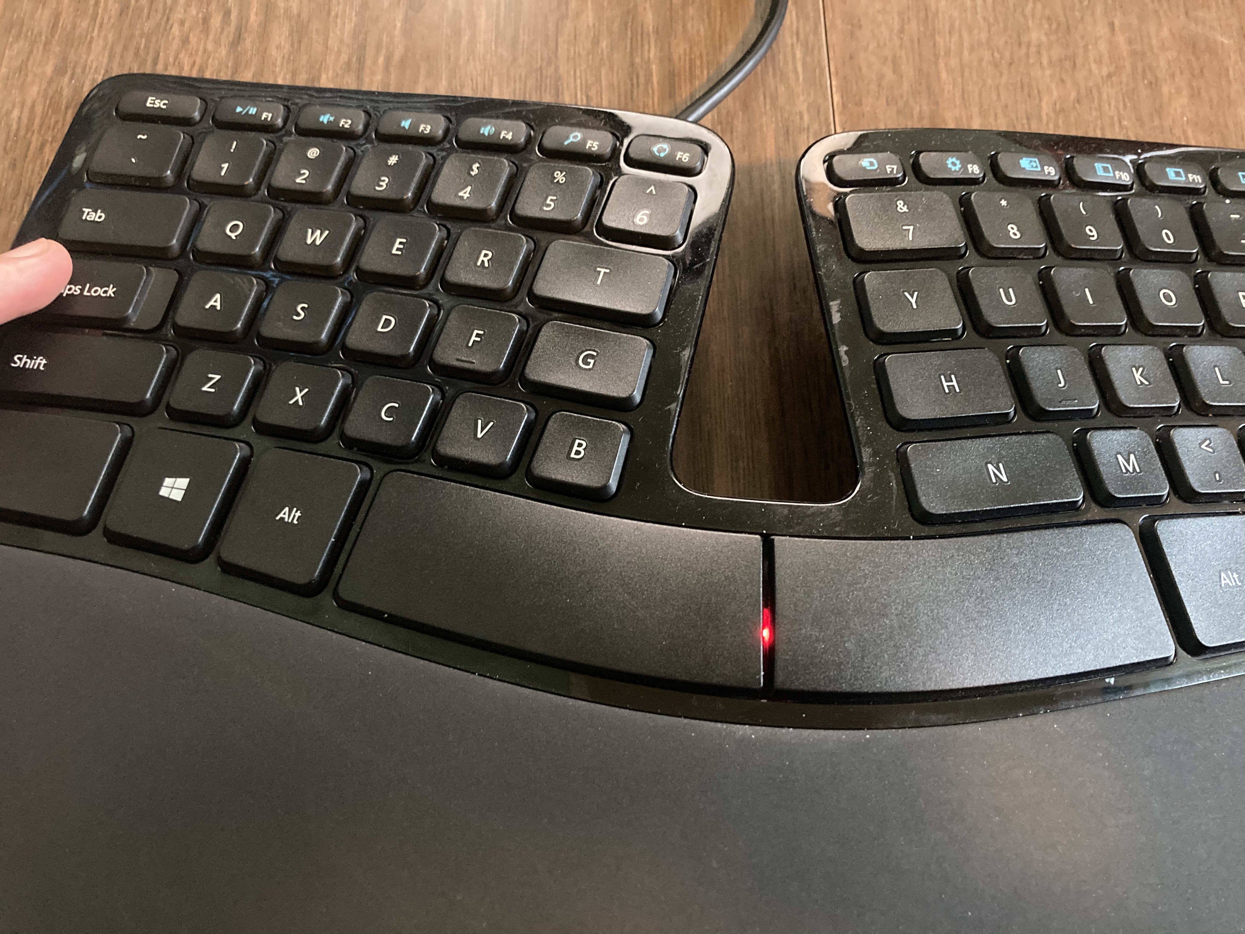 The Sculpt treats left and right spacebar as independent keys. Michael took advantage of that and mapped right spacebar to enter. Turns out I couldn’t live with that, so I mapped it back to space.