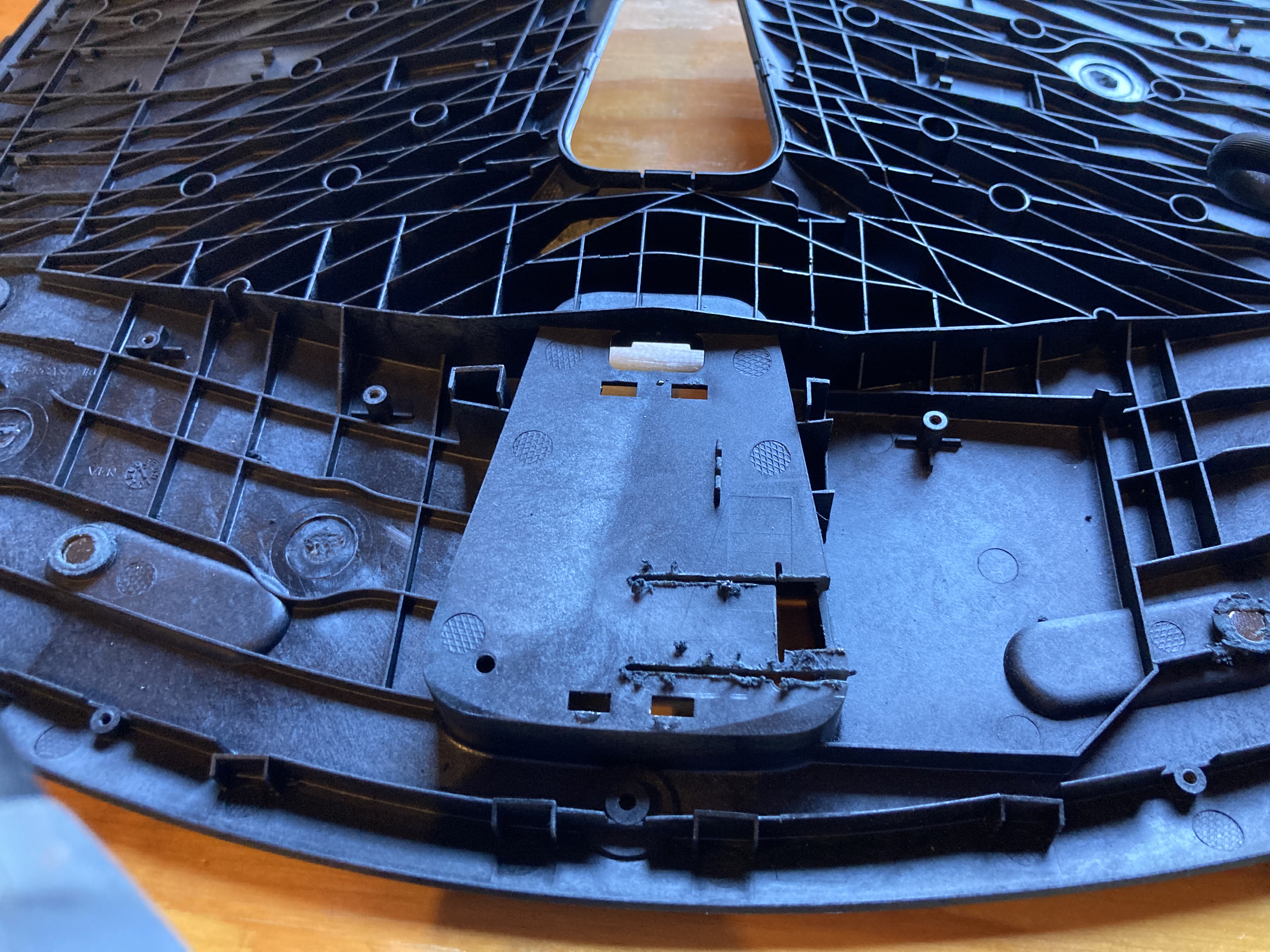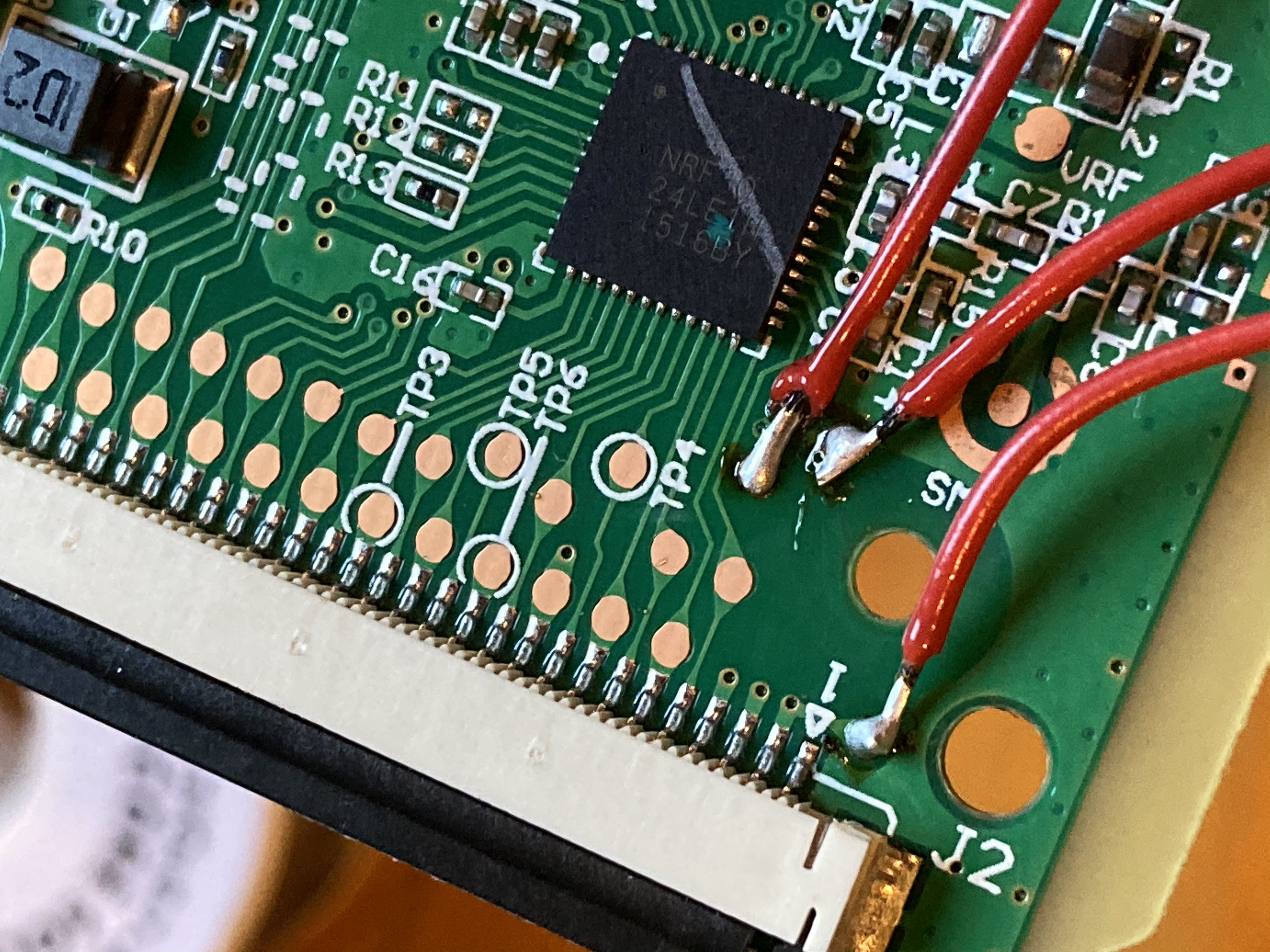 So maybe I could fix the Sculpt! I bought a transceiver-less Sculpt off eBay for cheap and popped it open (thanks Emmanuel Contreras!), thinking maybe its controller could be flashed with new firmware that speaks USB. The Sculpt uses a Nordic Semiconductor nRF24LE1, but I was nowhere near capable of making use of that information at the time, though it did point me to Samy Kamkar’s horrifying guide on surreptitiously sniffing keystrokes from nearby (older) Microsoft wireless keyboards.