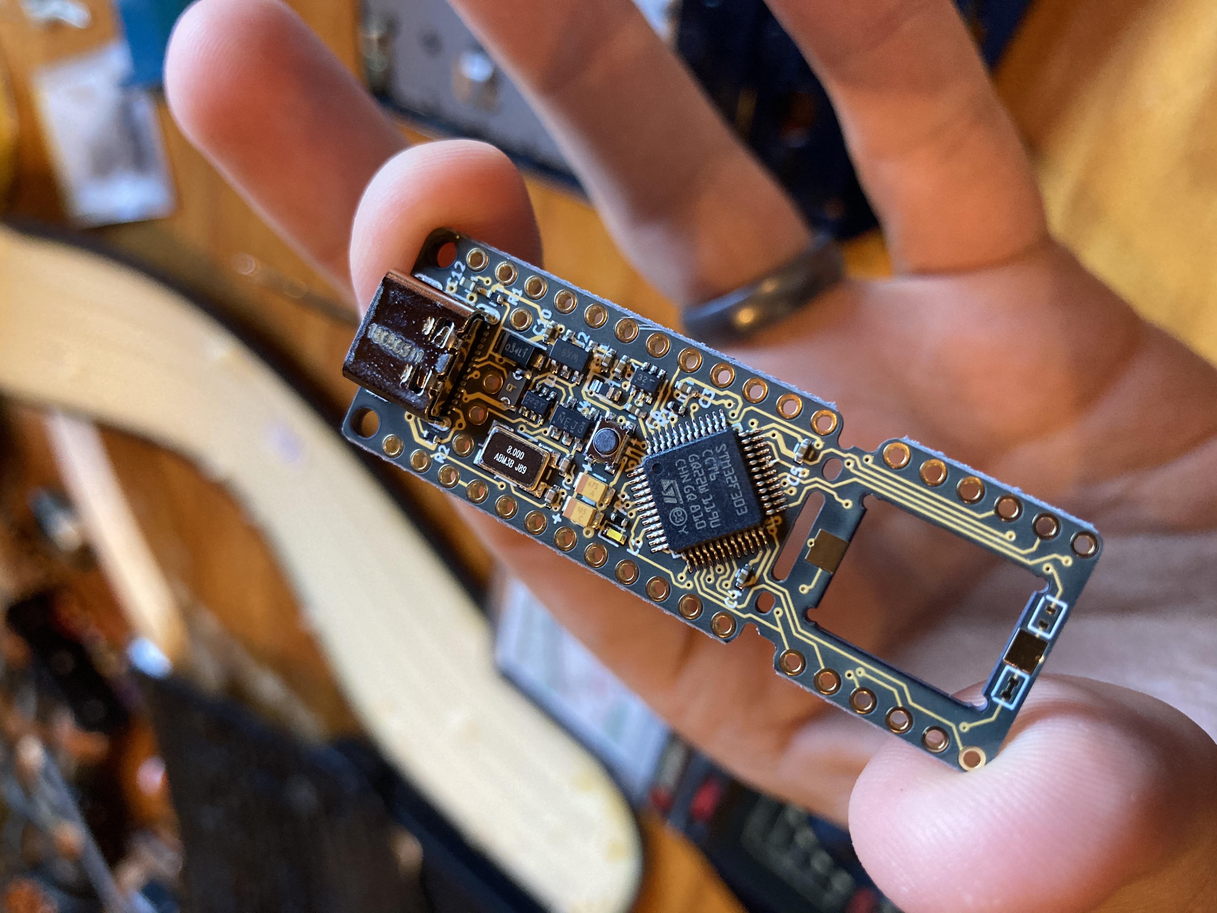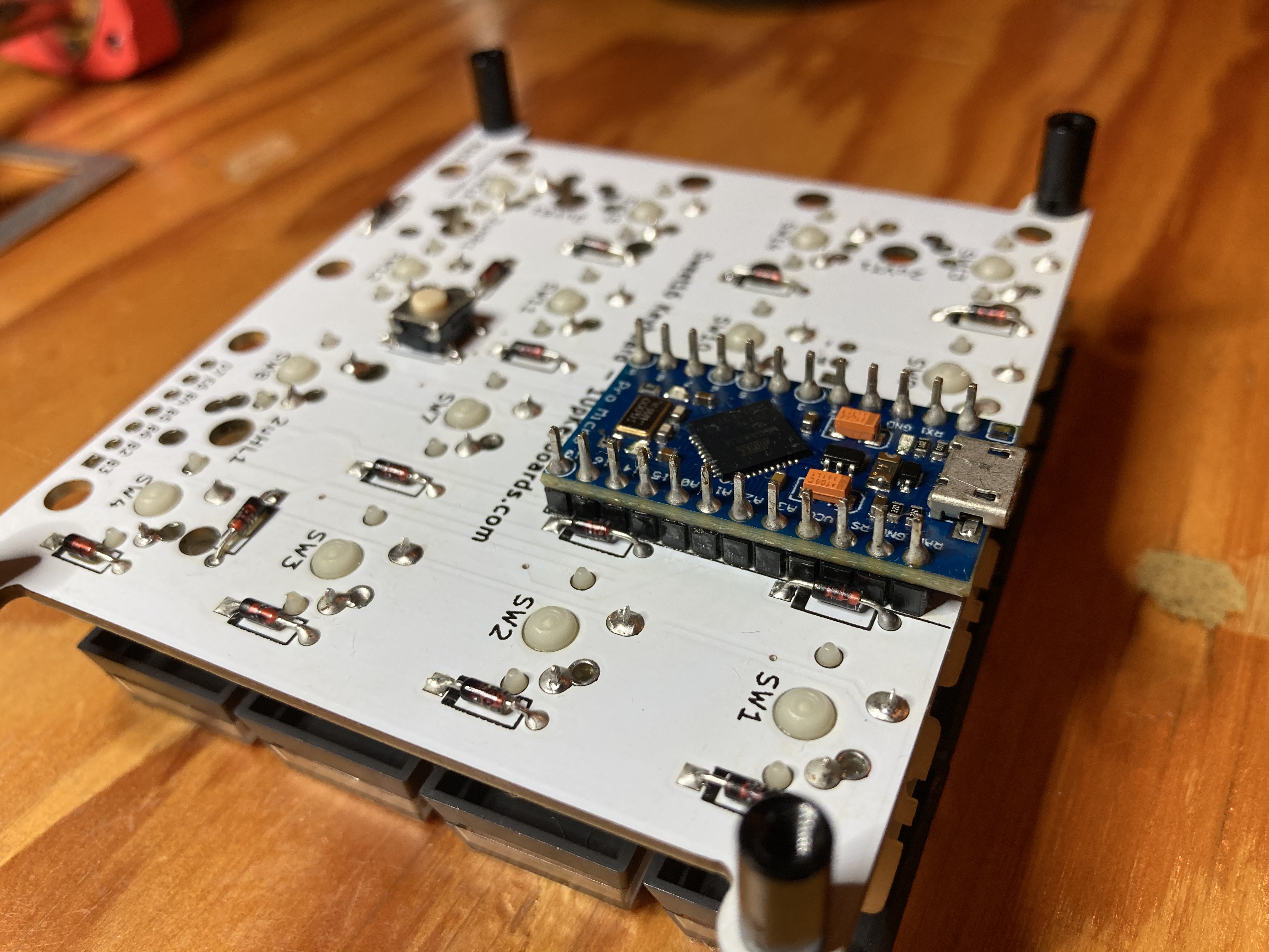 After getting the clock speed issues sorted, I flashed QMK — thanks again to Michael Fincham for mapping the layout — and it worked!